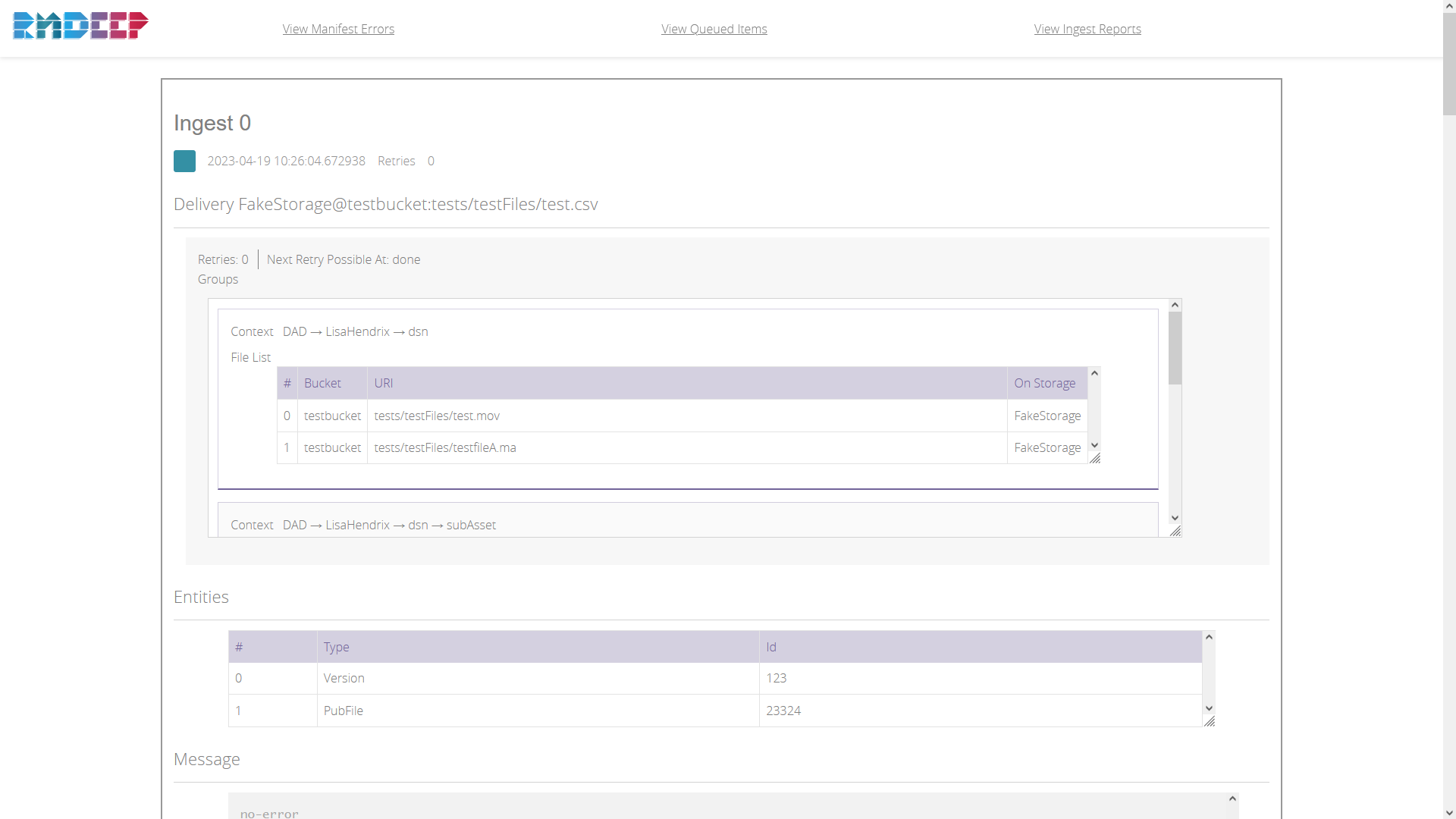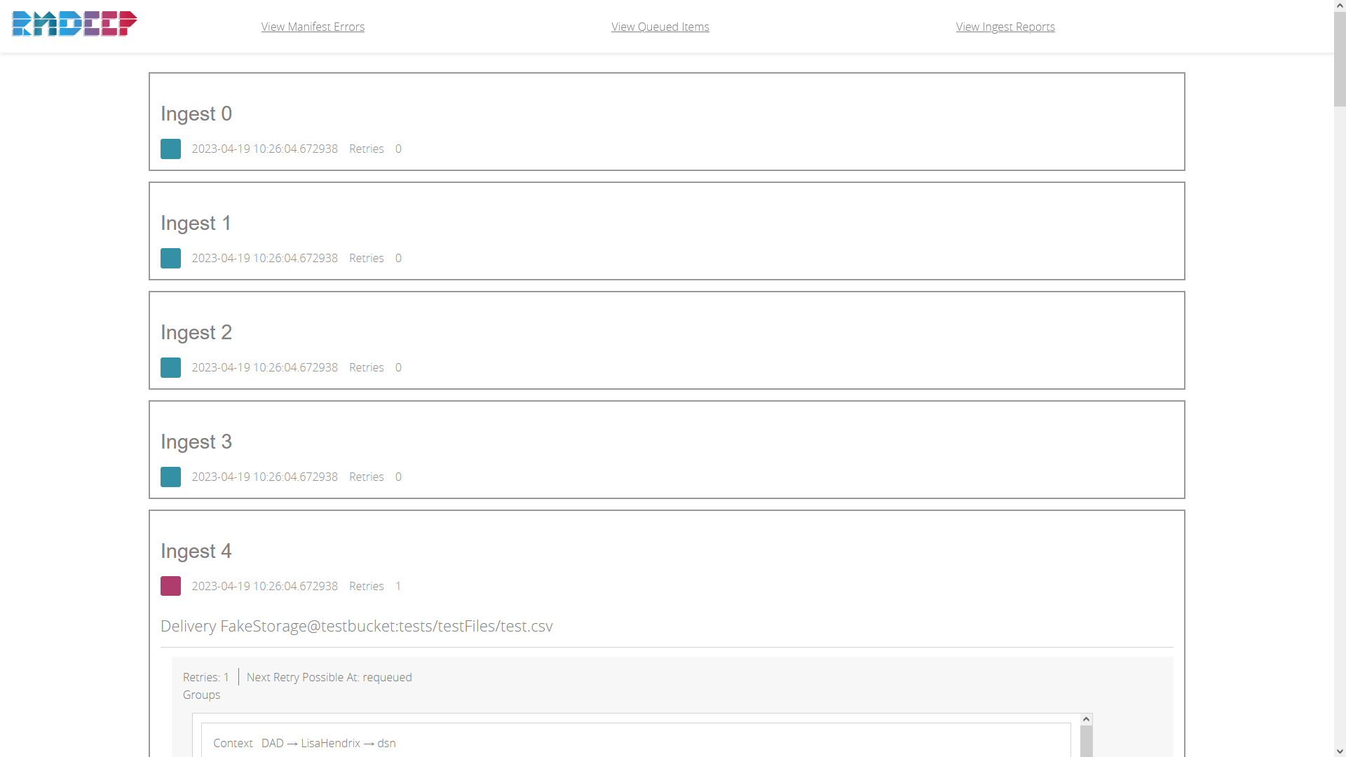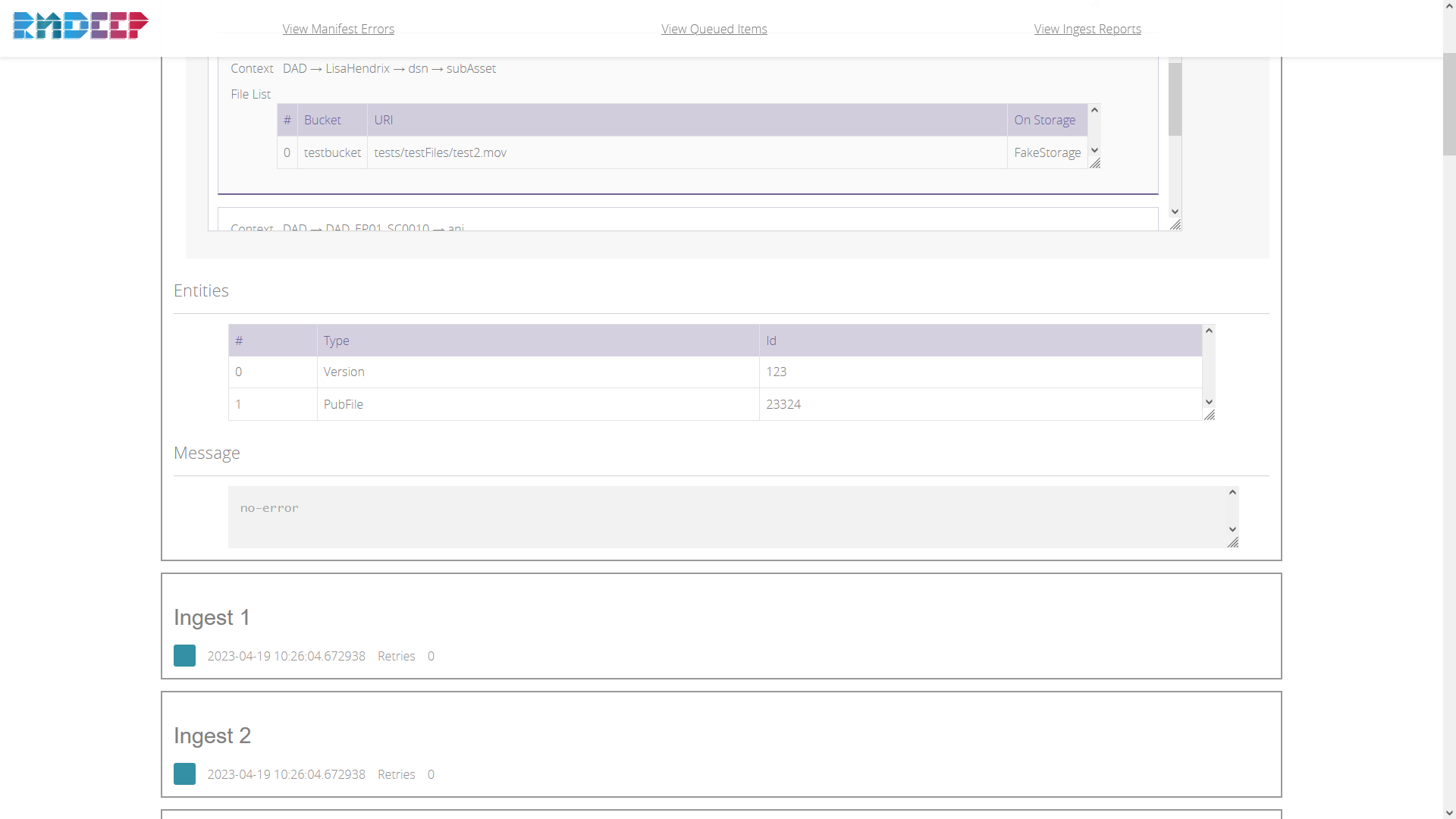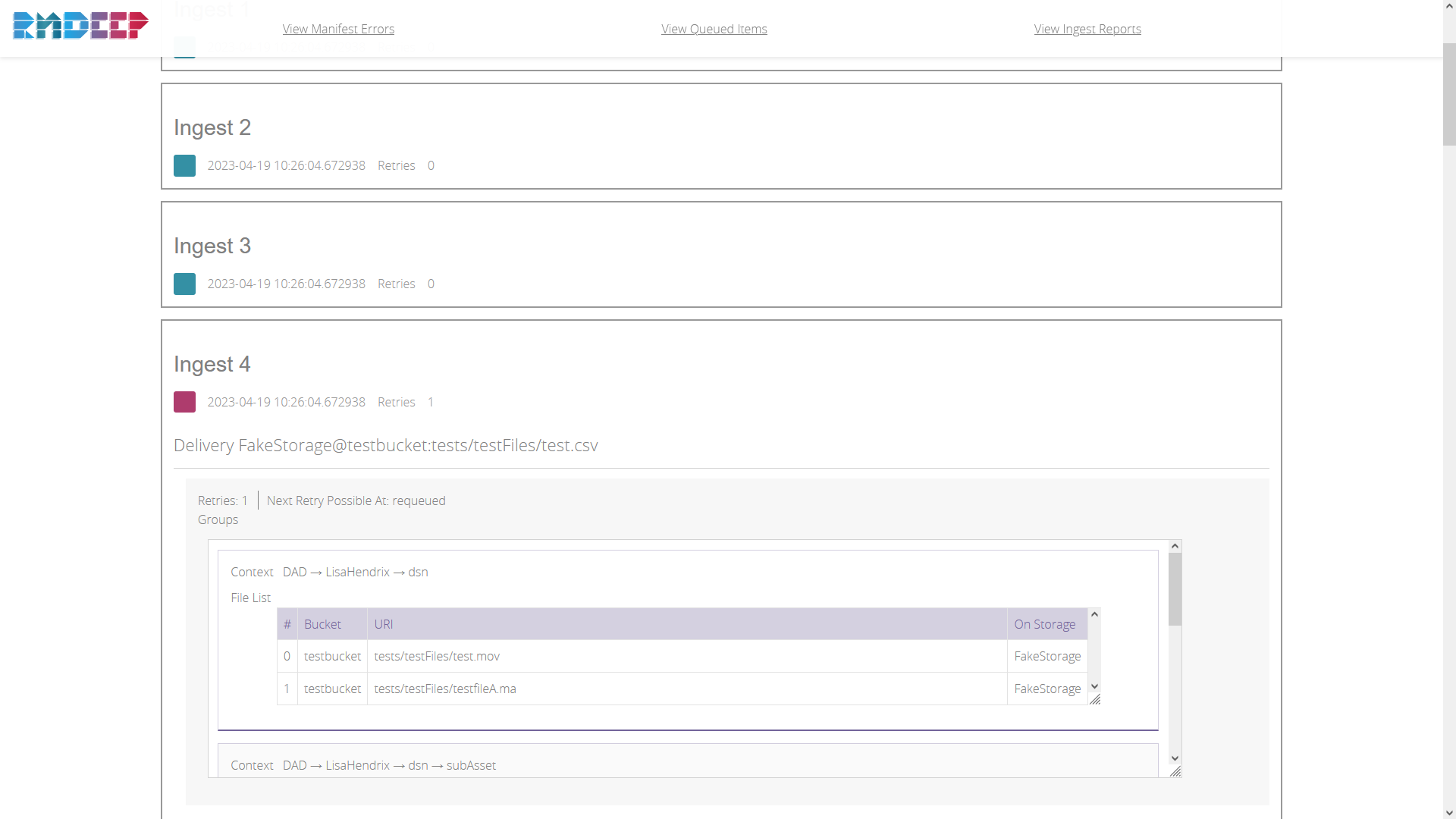 - Ingestor (Cloud-Server): Ingest management queue. Digests a queue entry. Compiles file- renames, transfers or registrations and queues them in SG.