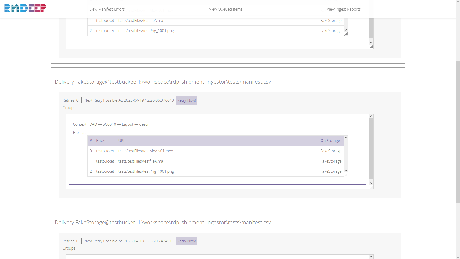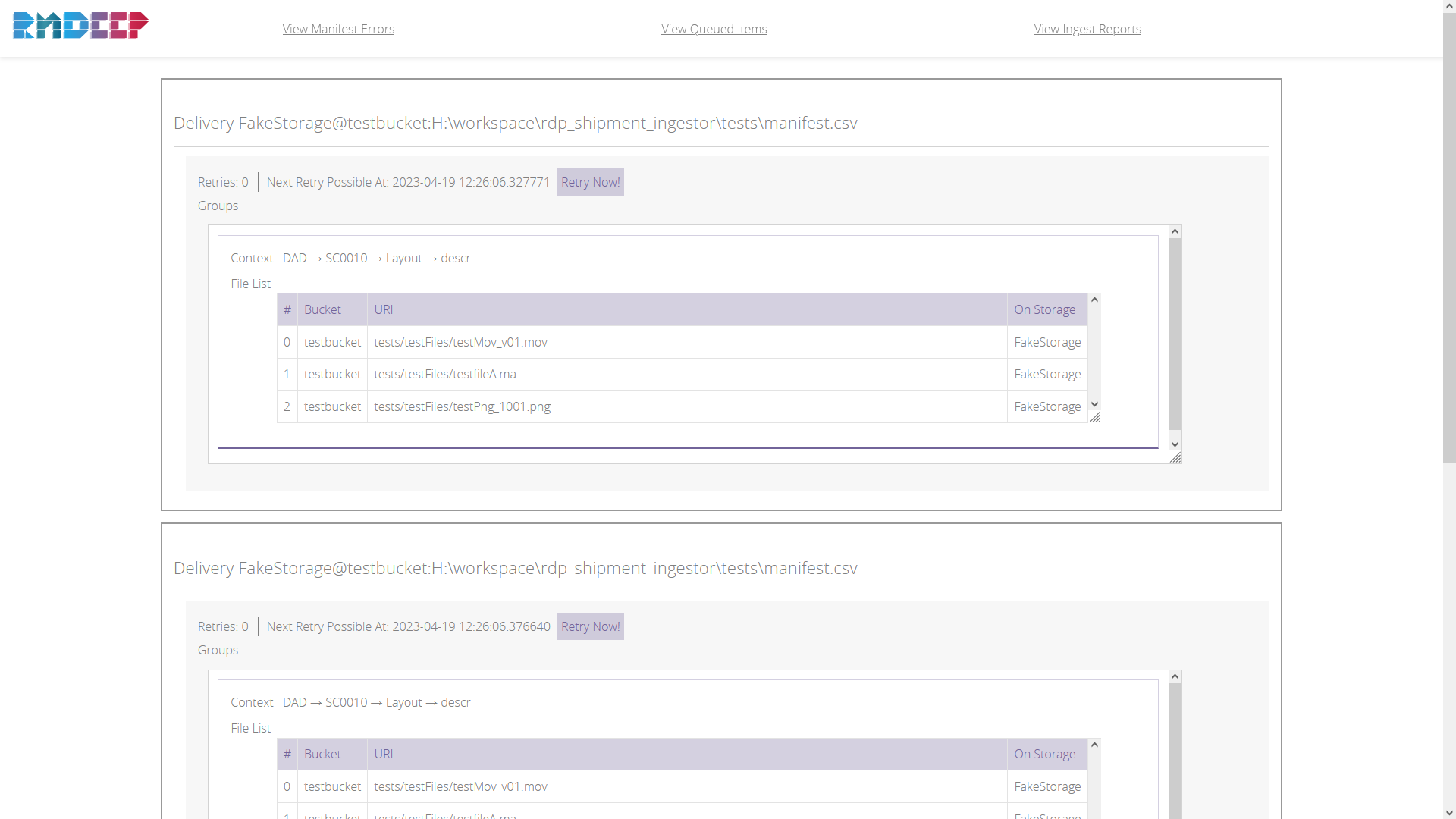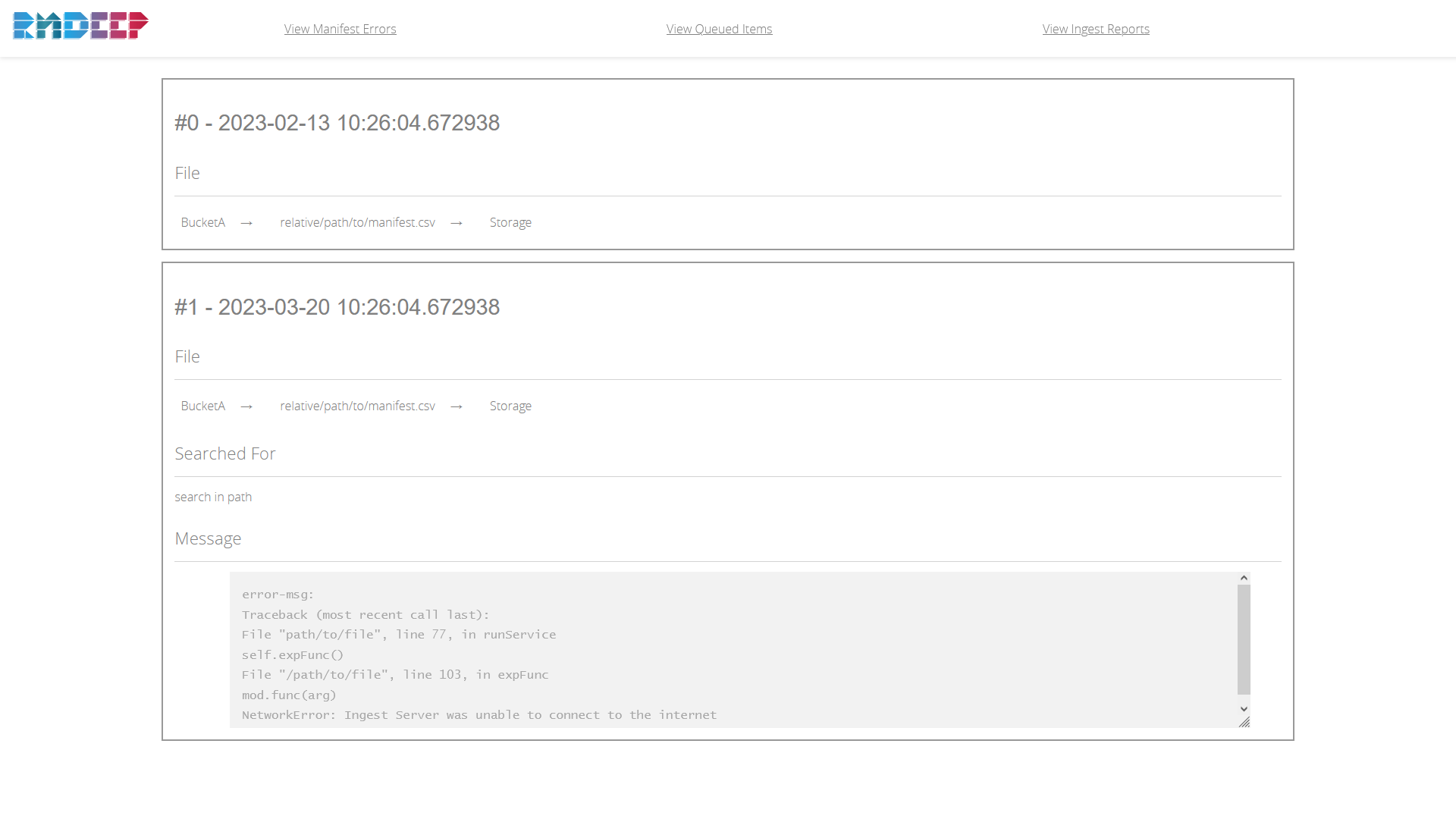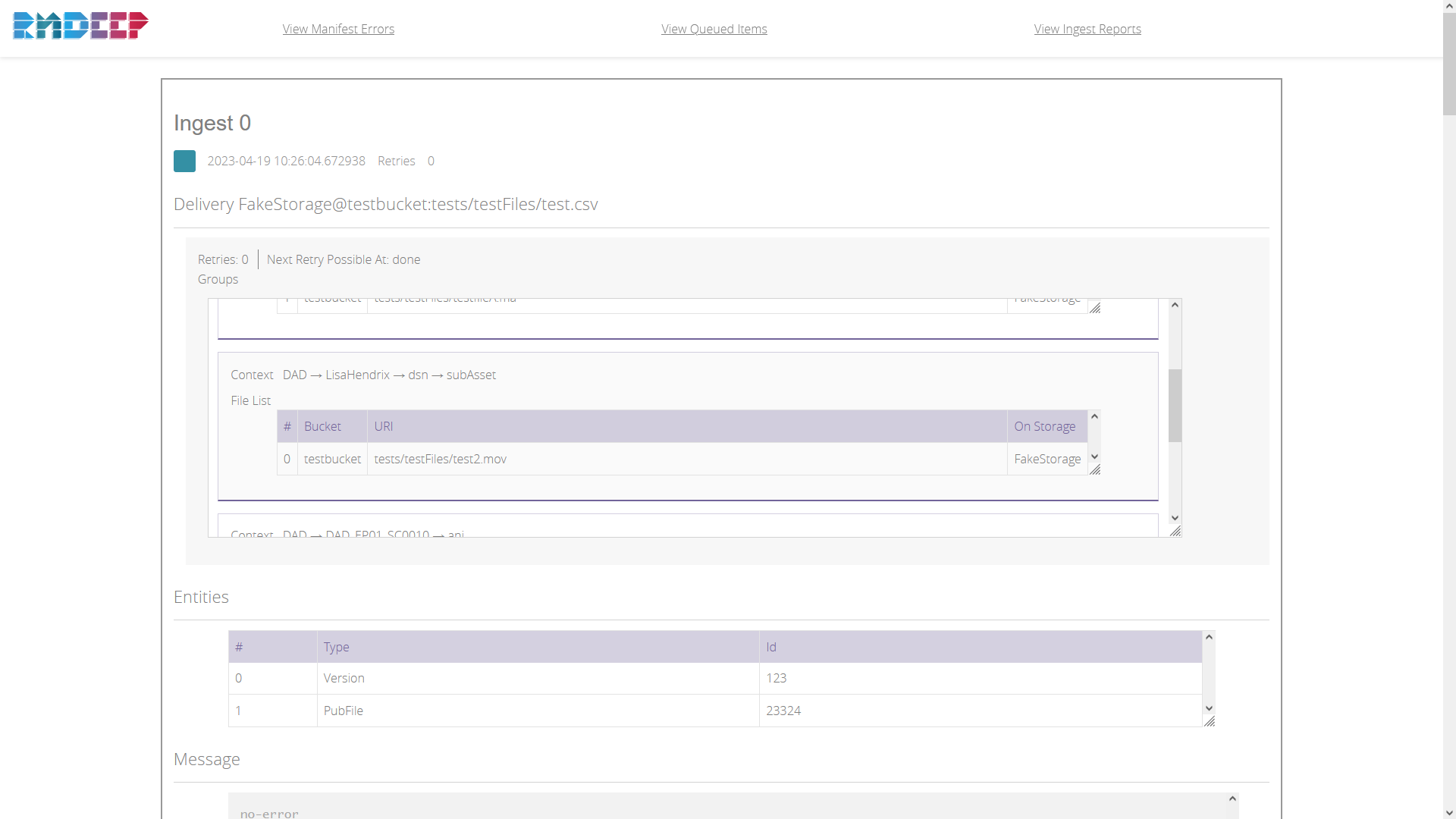 - Ingestor (Cloud-Server): Ingest management queue. Digests a queue entry. Compiles file- renames, transfers or registrations and queues them in SG.